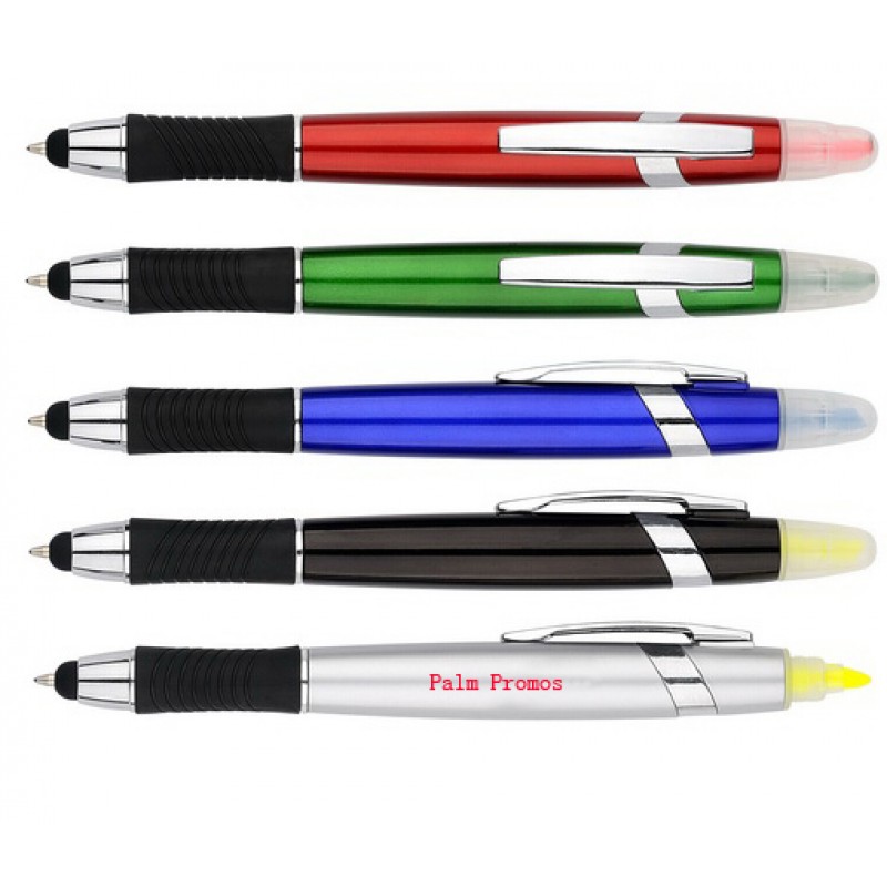 This three-in-one office must-have is the perfect choice in your next promotion. Your company logo and information can be easily imprinted on the barrel. Twist the barrel, you can choose ballpoint and stylus for your convience. When you writing or reading, put off the end, you can use a highlighter to mark important points